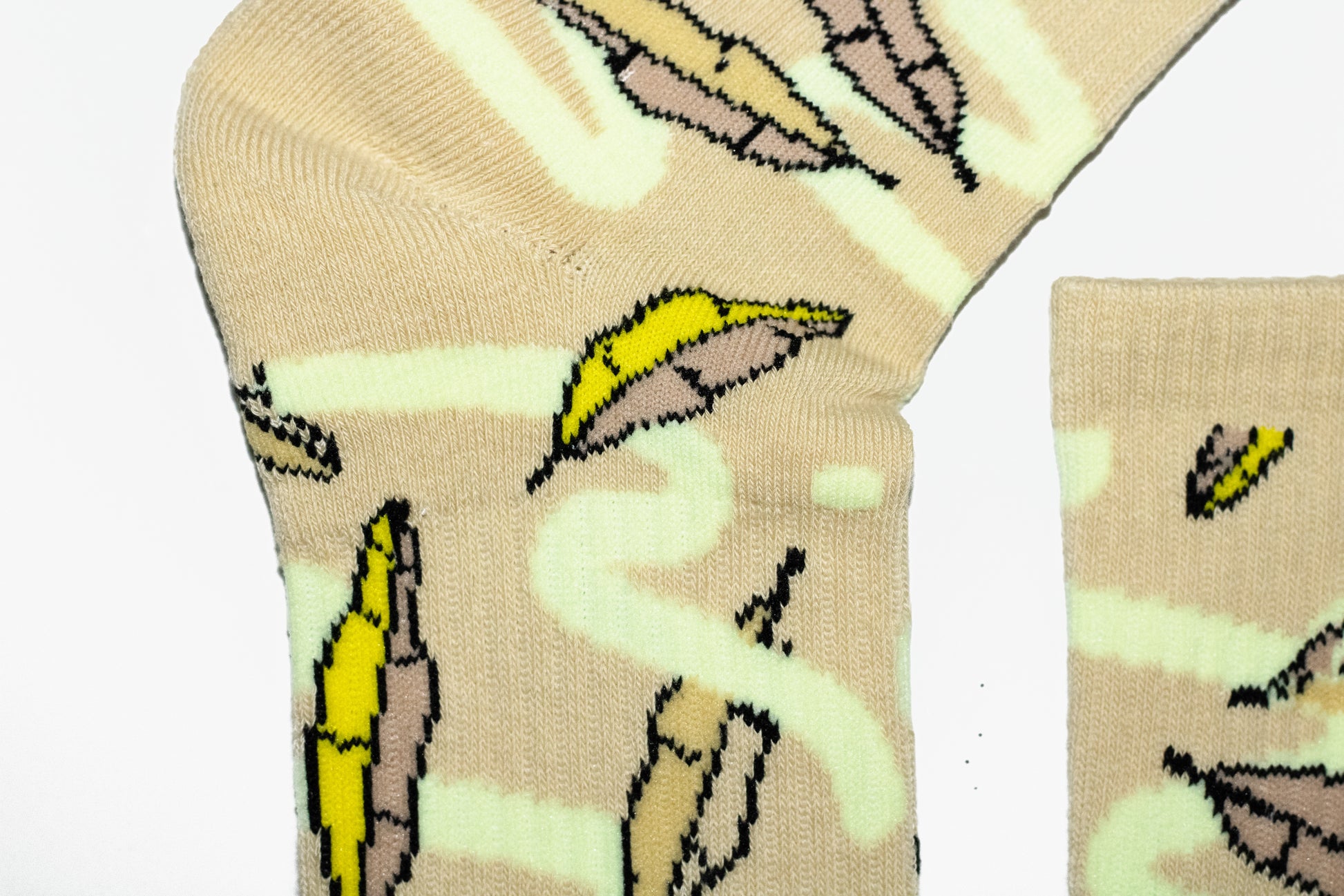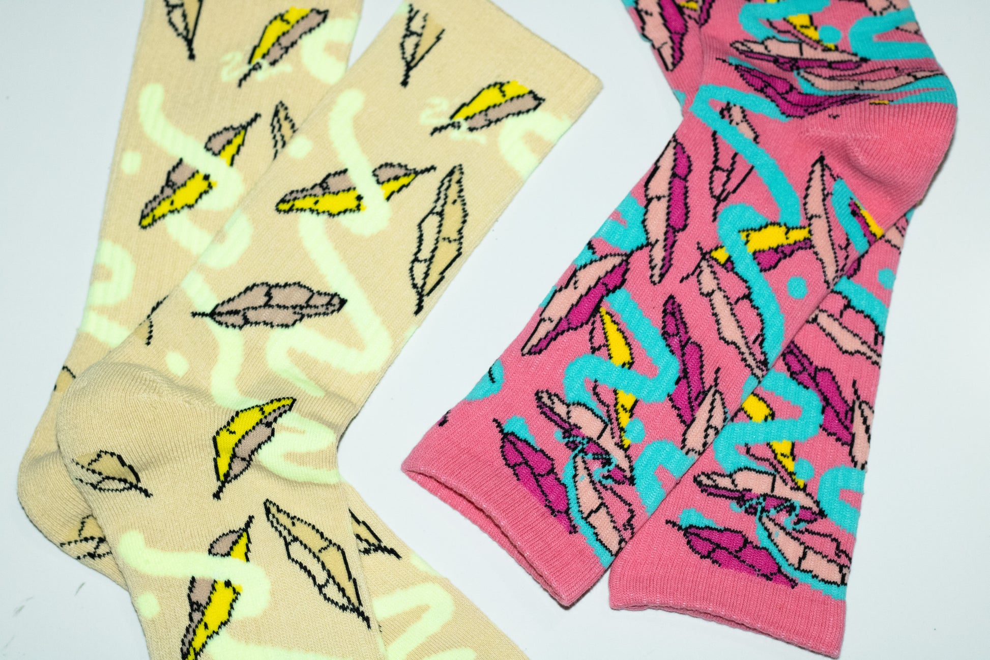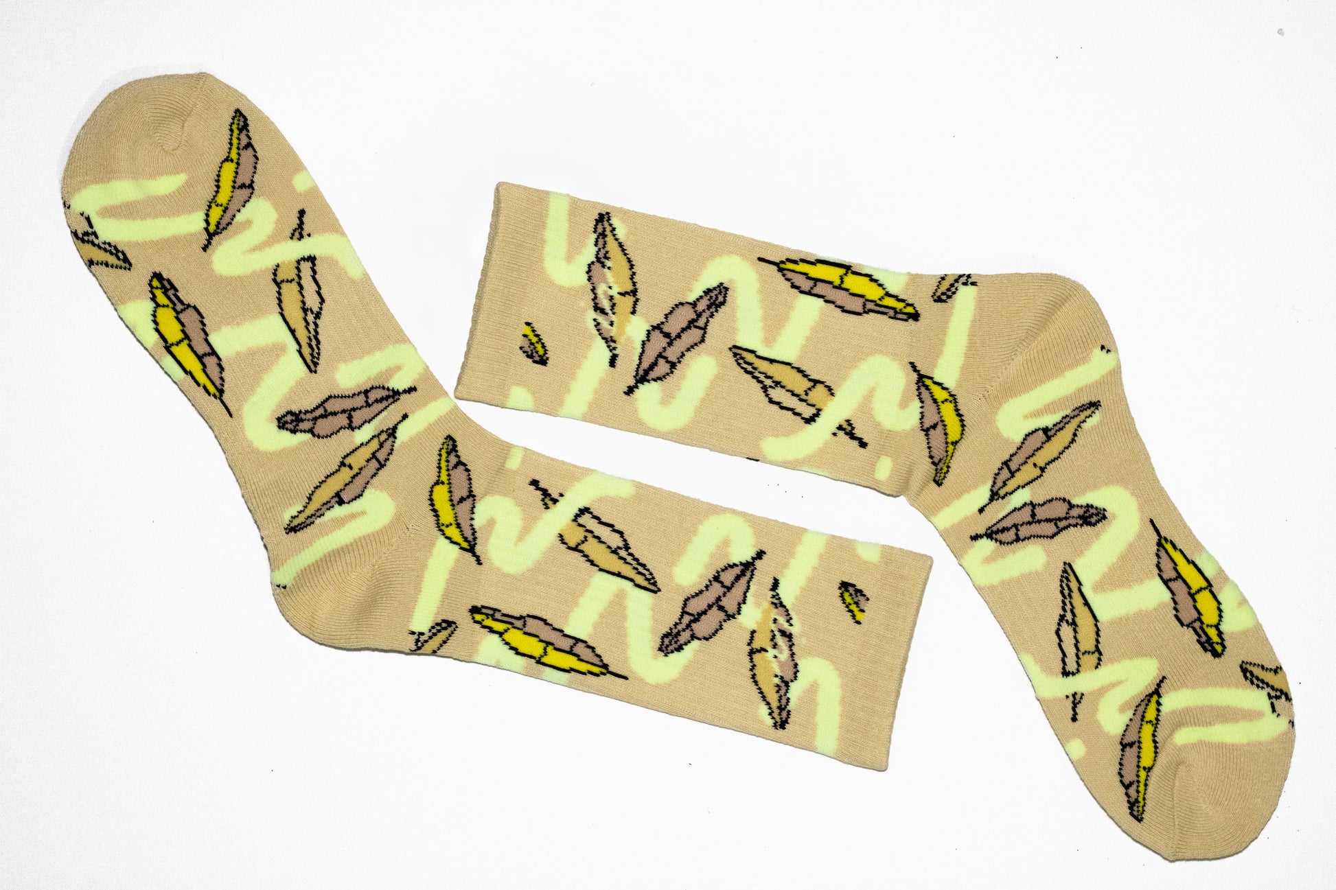 Na Leaf Ya is a crew sock featuring a jacquard pattern